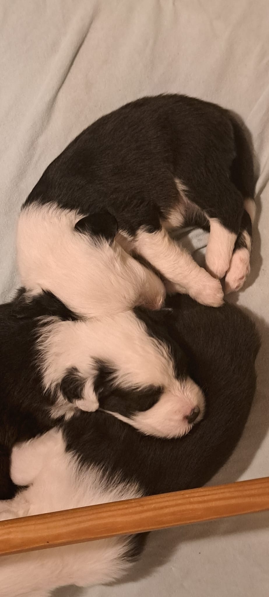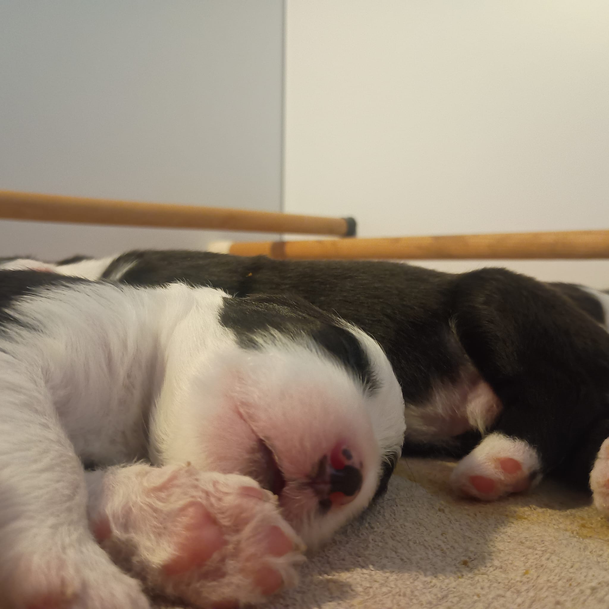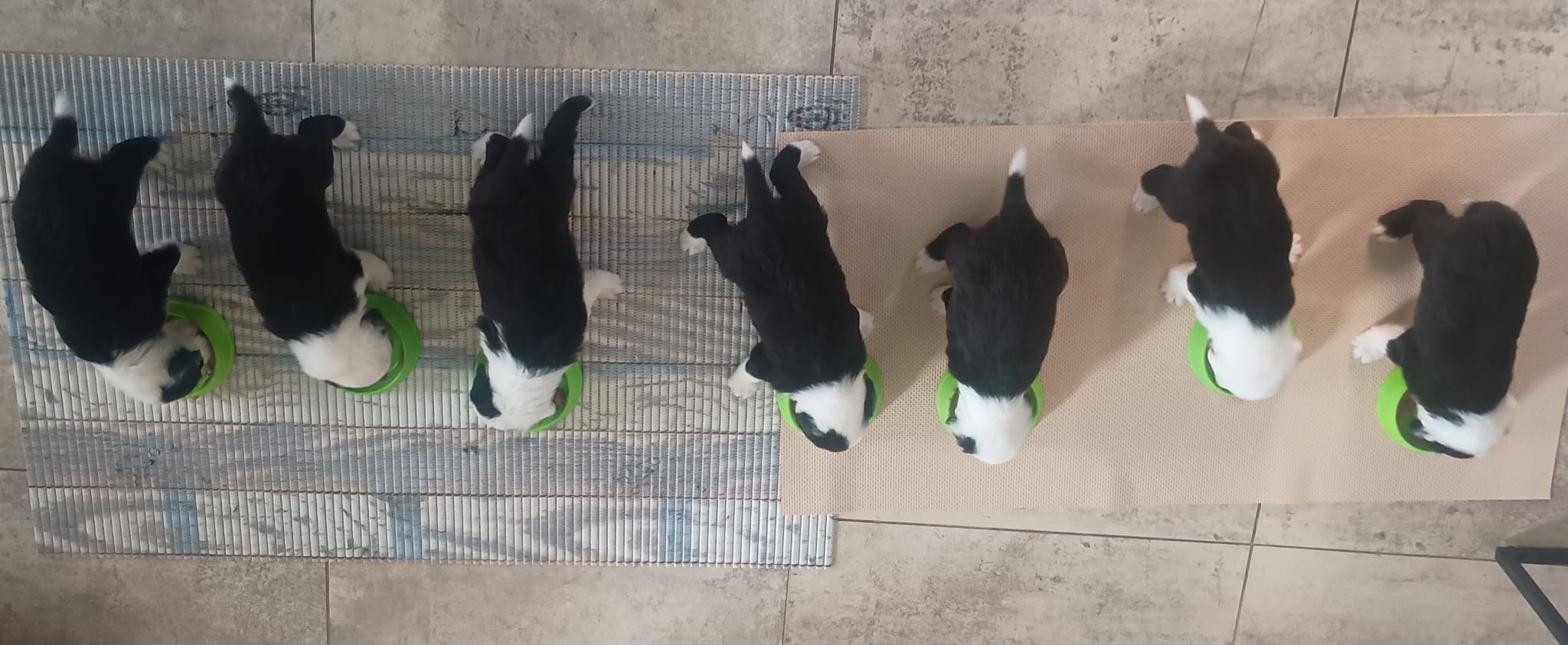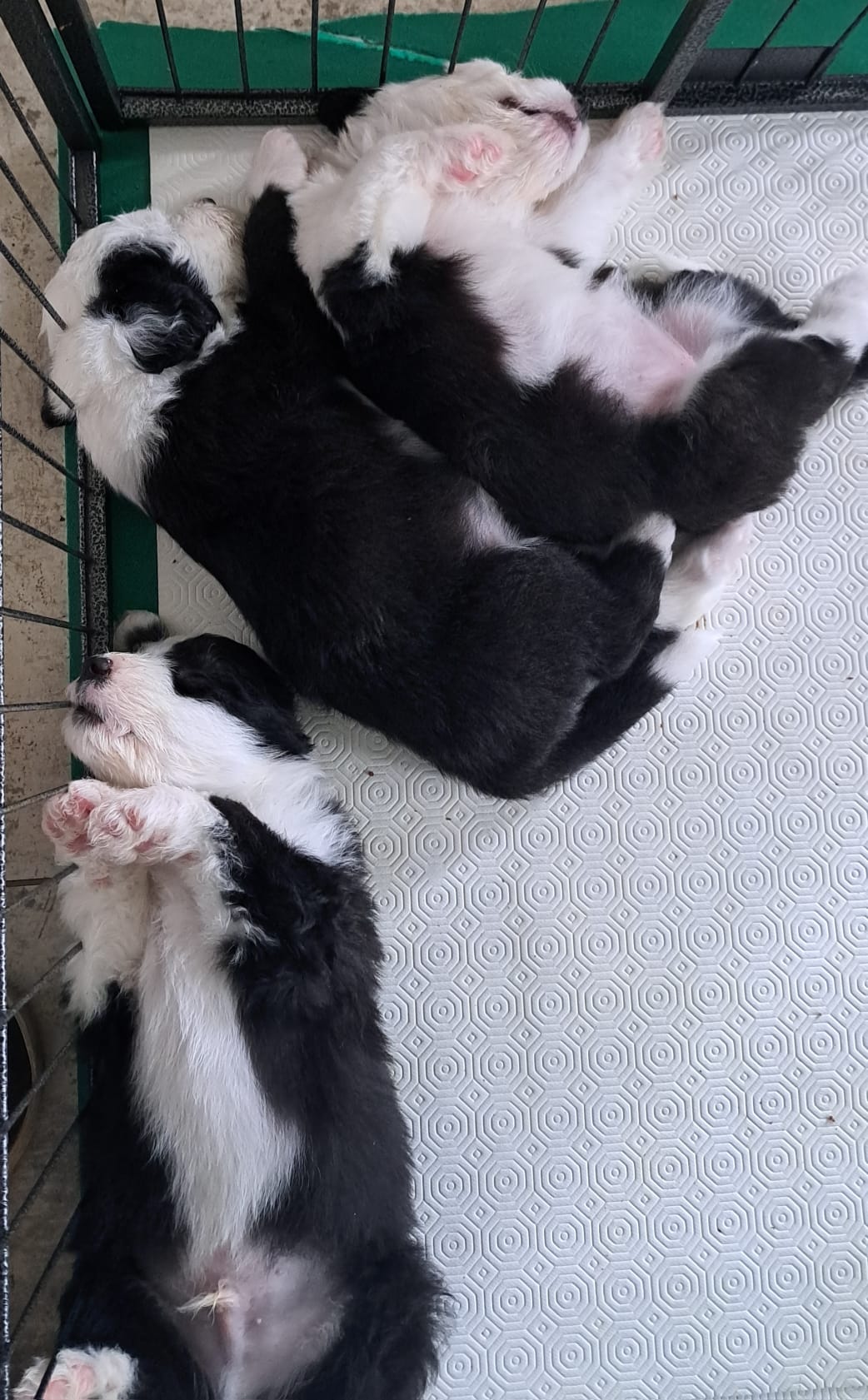 Iniziano a tentare i primi passi incerti, si cercano tra loro e la coda accenna i primi timidi scodinzolii.