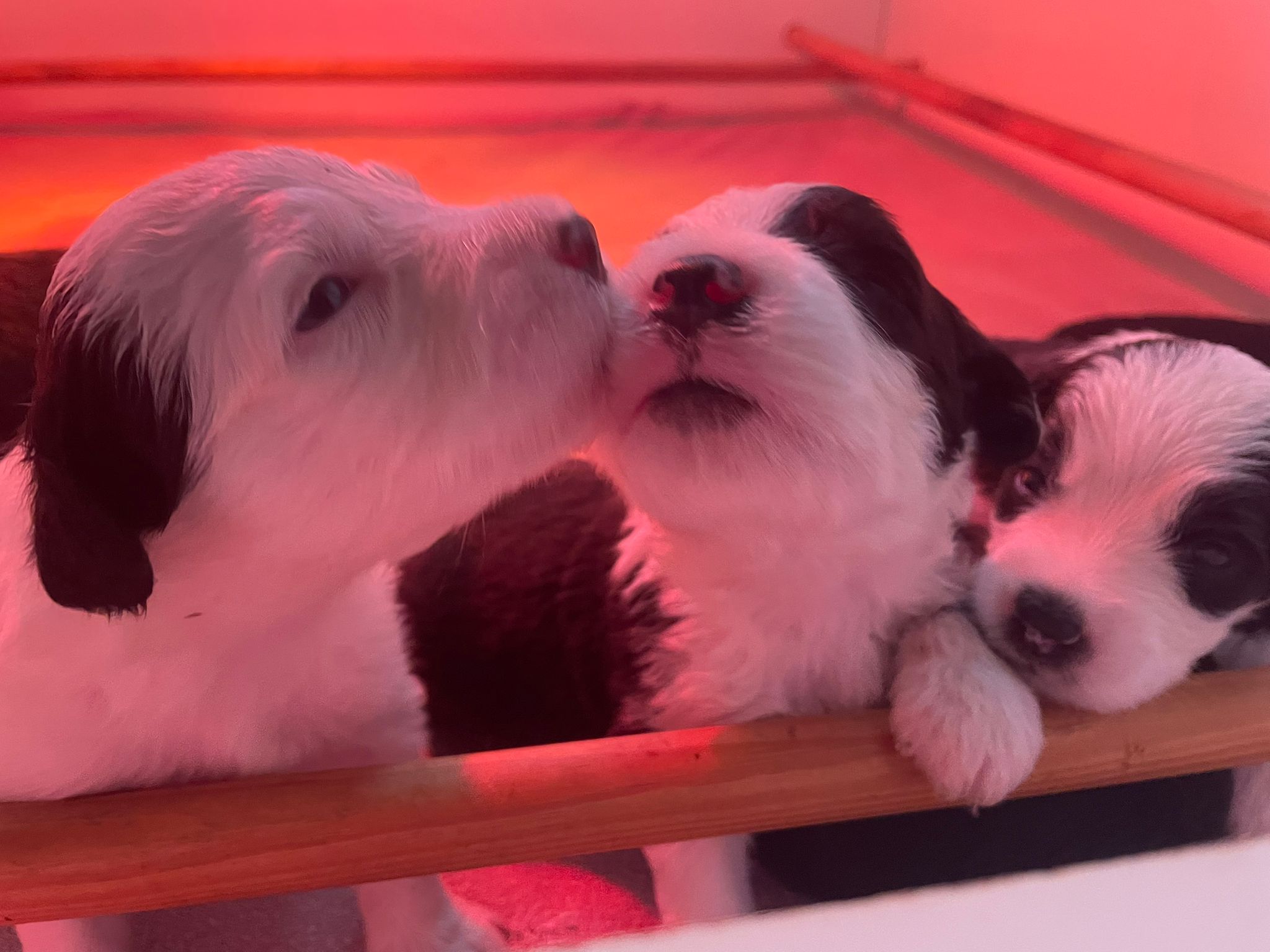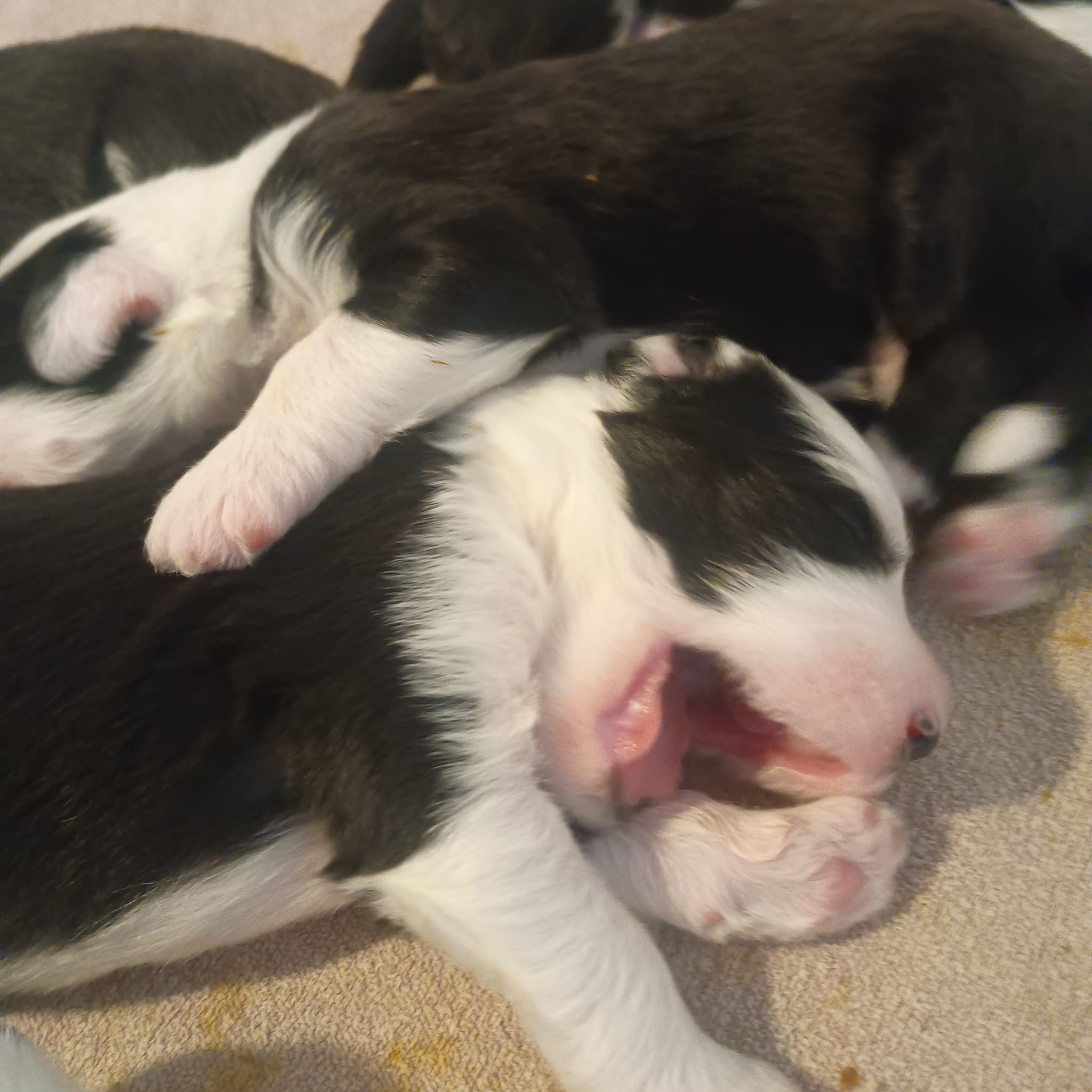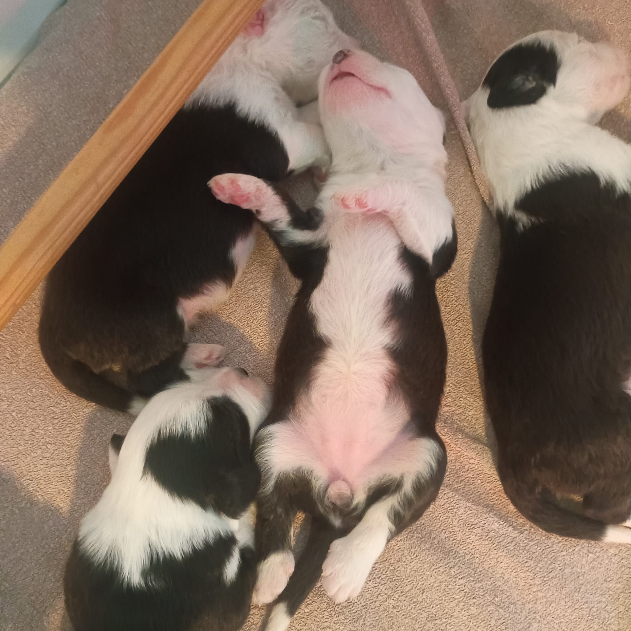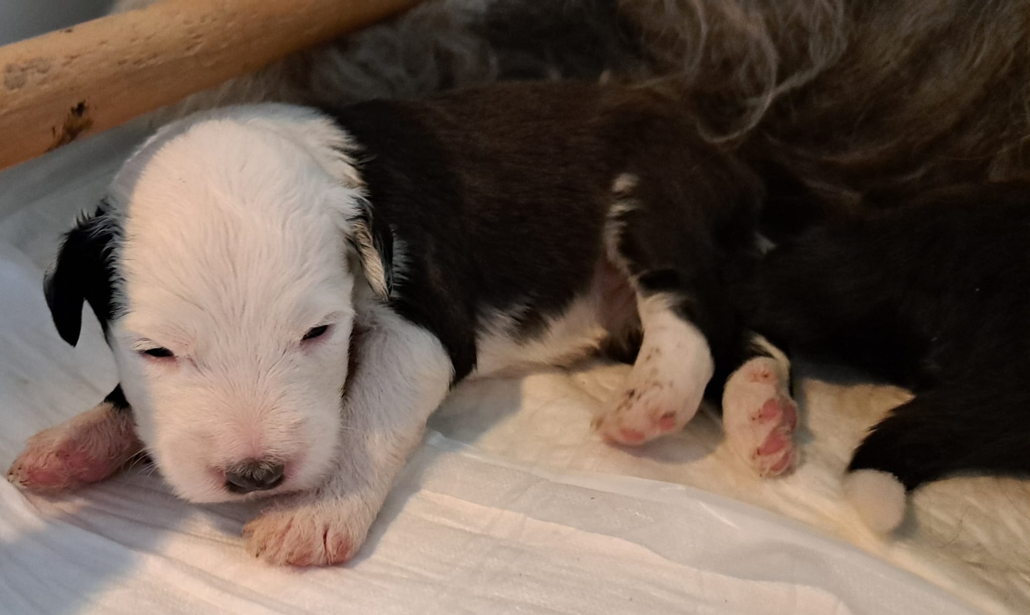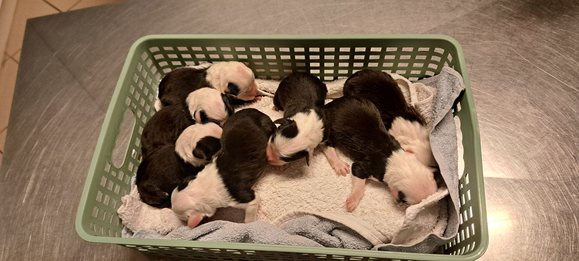 Iniziano a tentare i primi passi incerti, si cercano tra loro e la coda accenna i primi timidi scodinzolii.