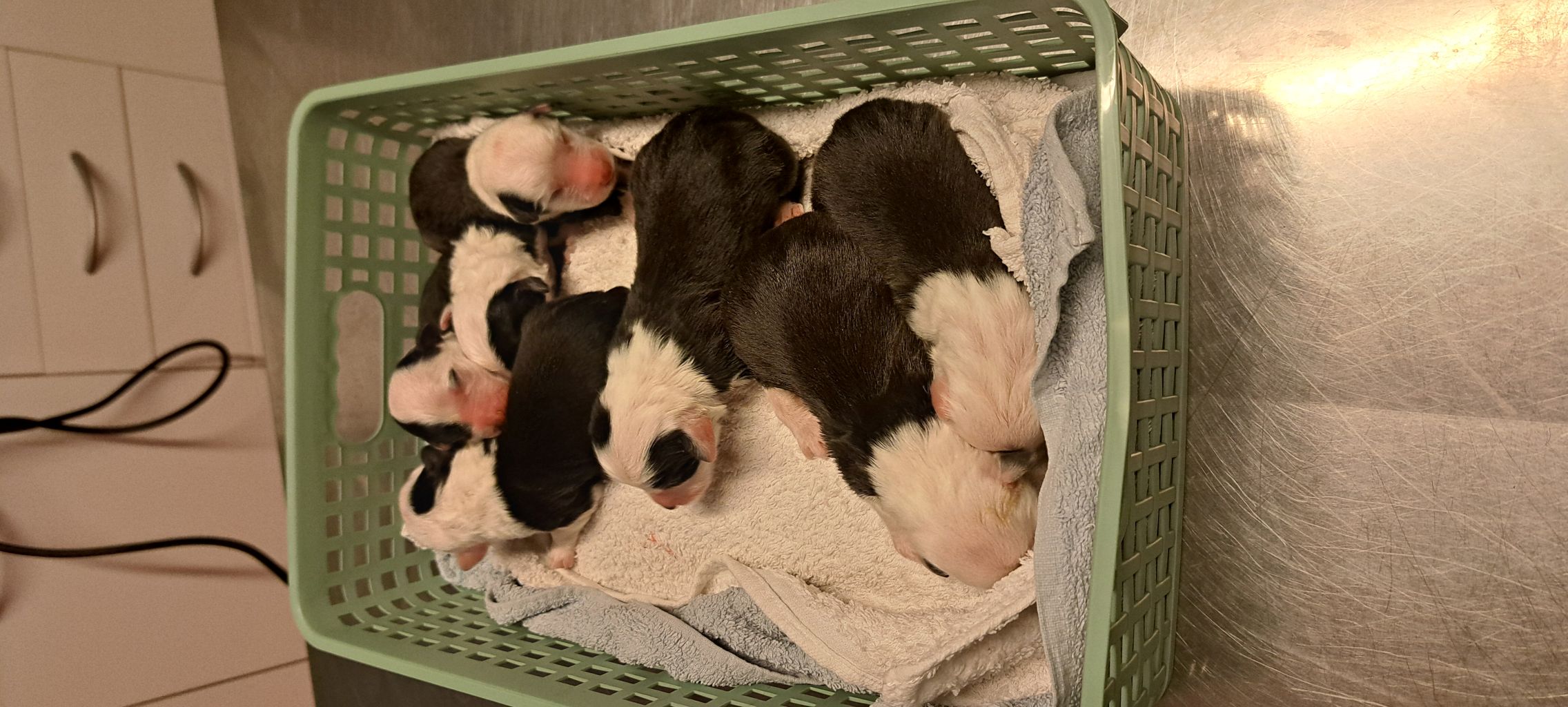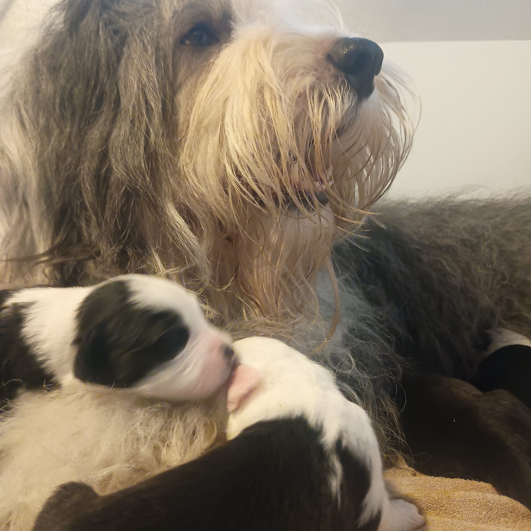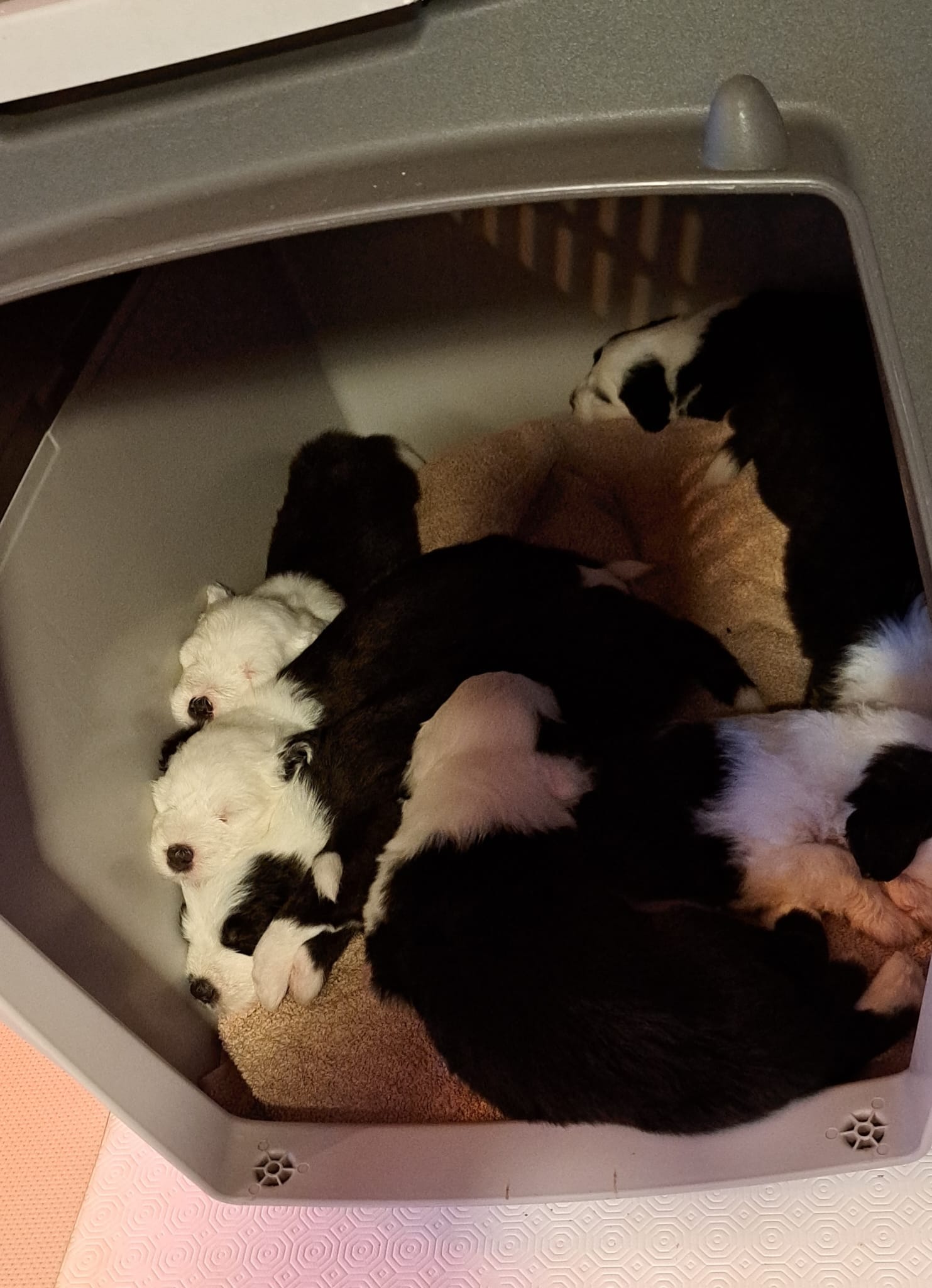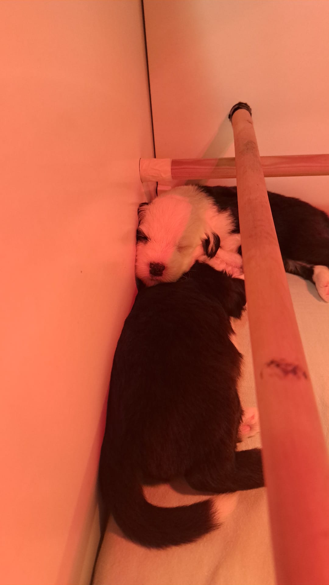 Iniziano a tentare i primi passi incerti, si cercano tra loro e la coda accenna i primi timidi scodinzolii.