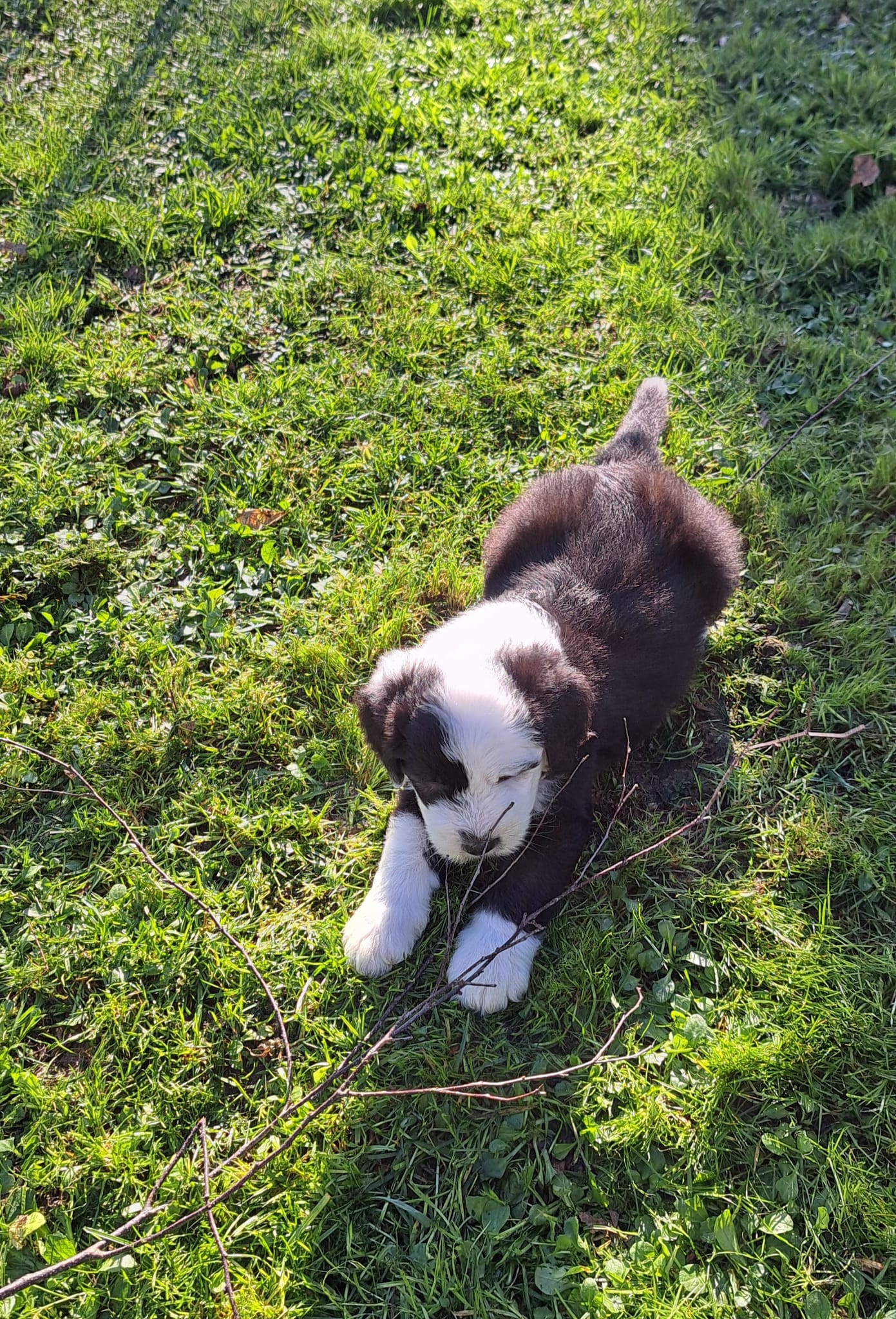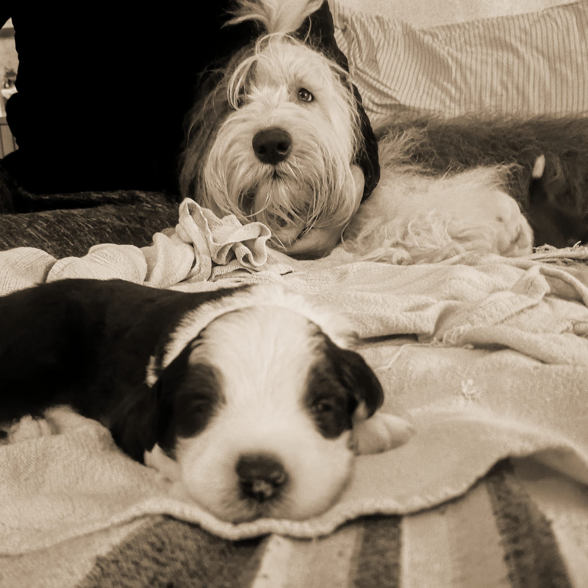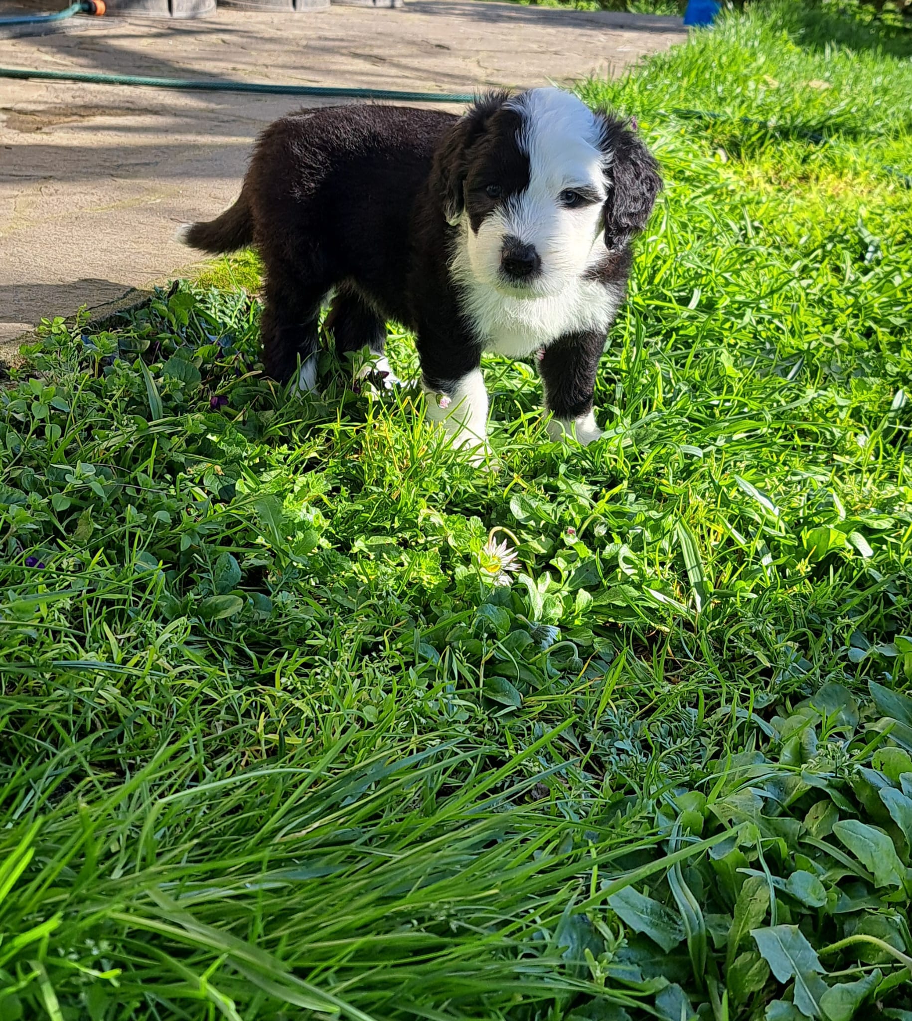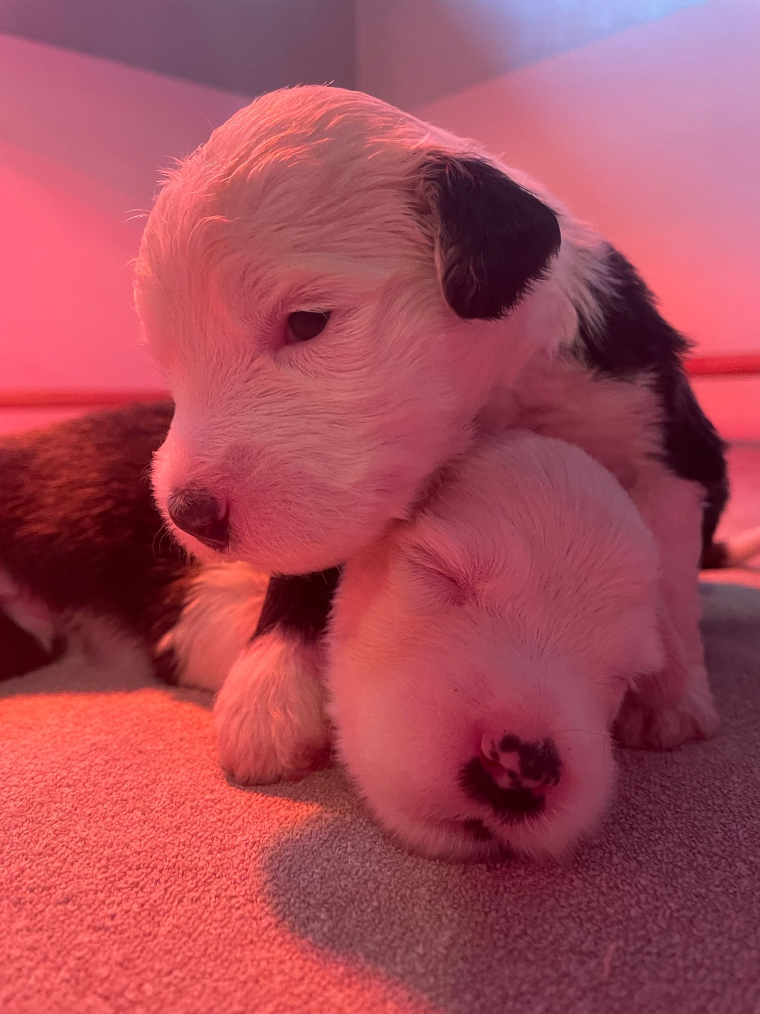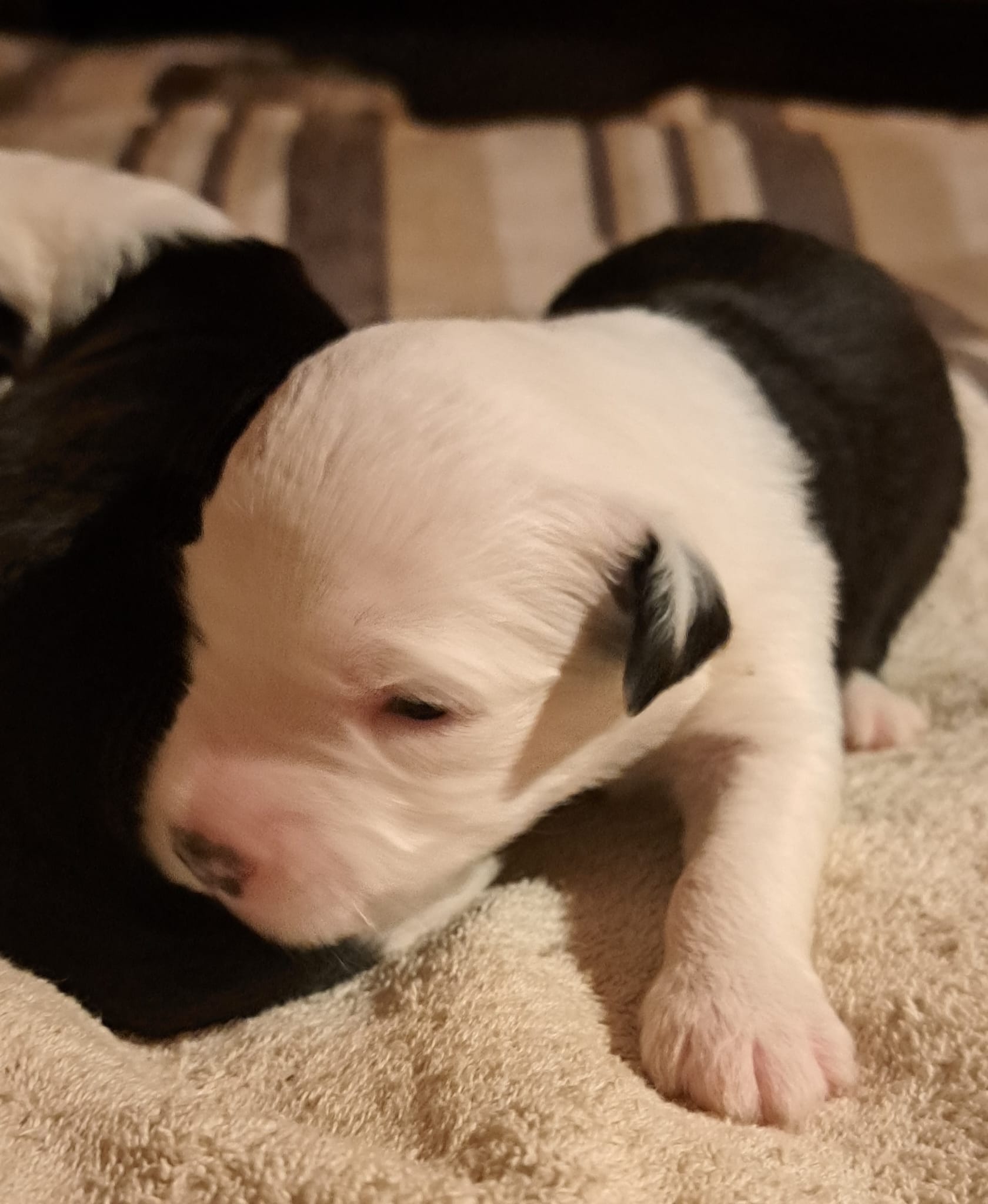 Iniziano a tentare i primi passi incerti, si cercano tra loro e la coda accenna i primi timidi scodinzolii.