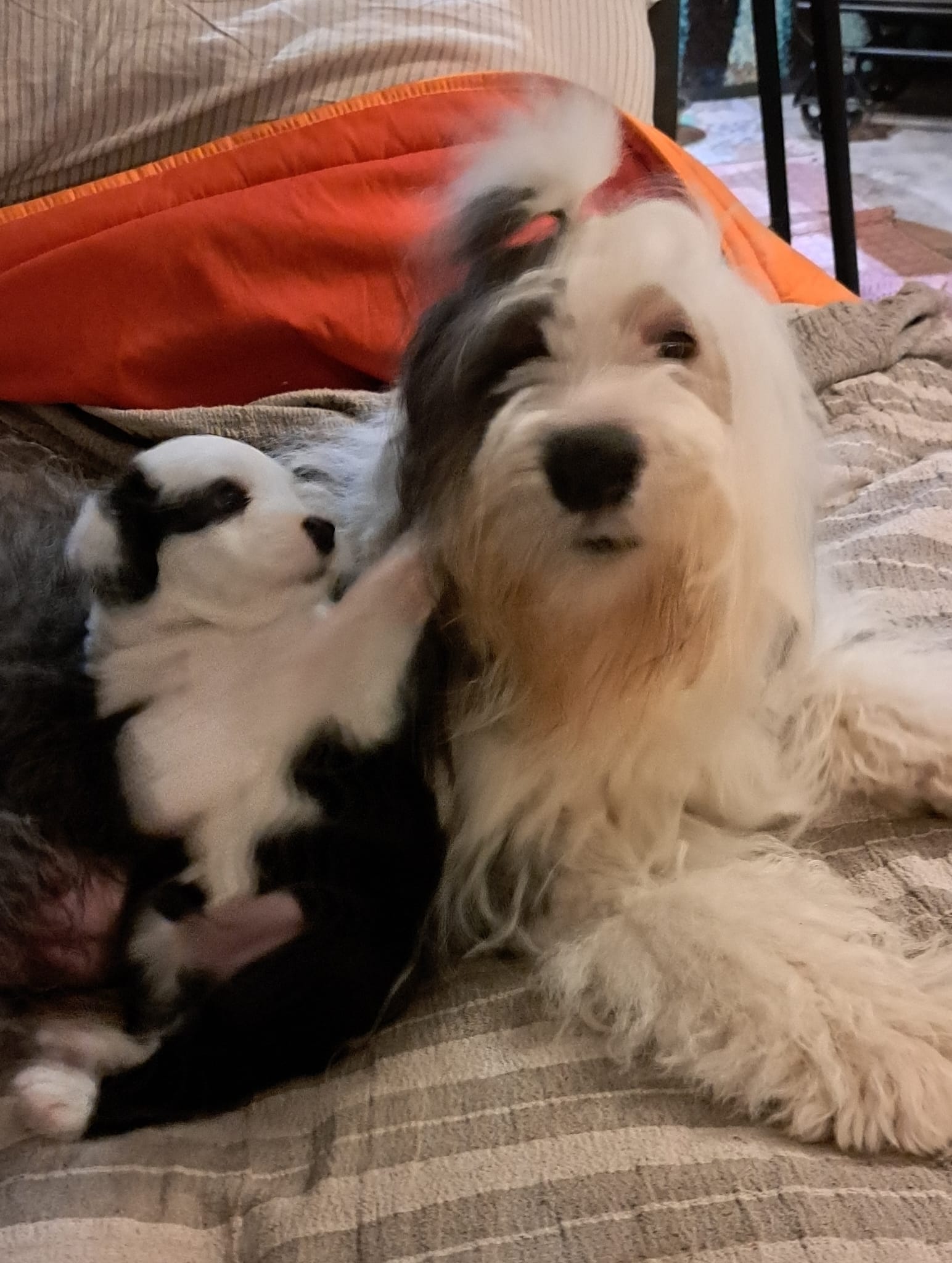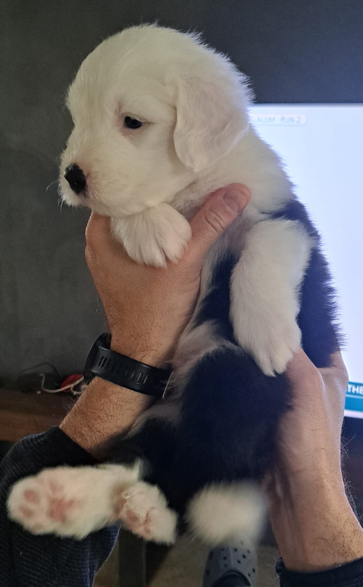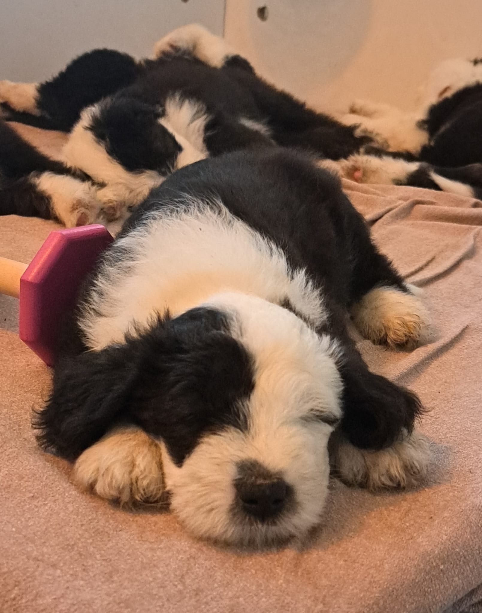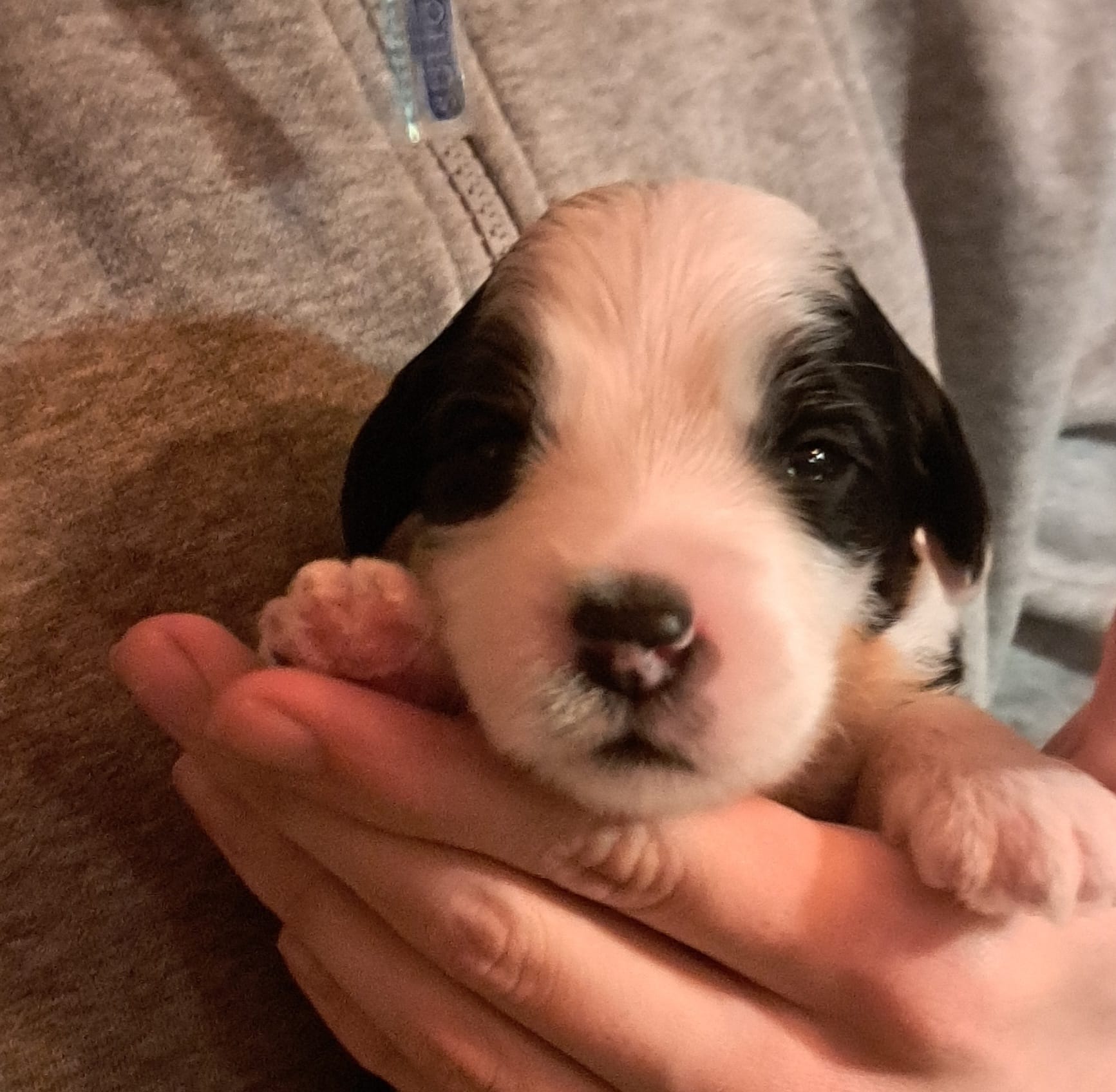 Iniziano a tentare i primi passi incerti, si cercano tra loro e la coda accenna i primi timidi scodinzolii.